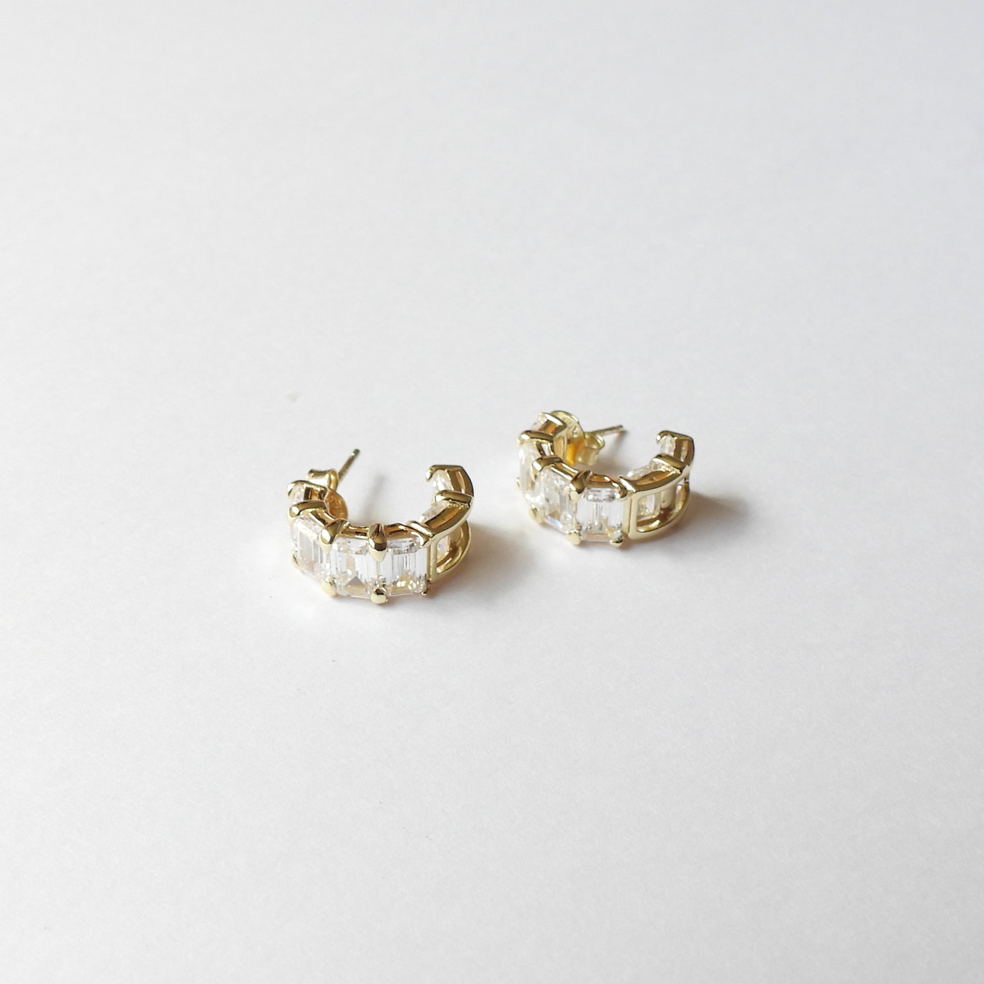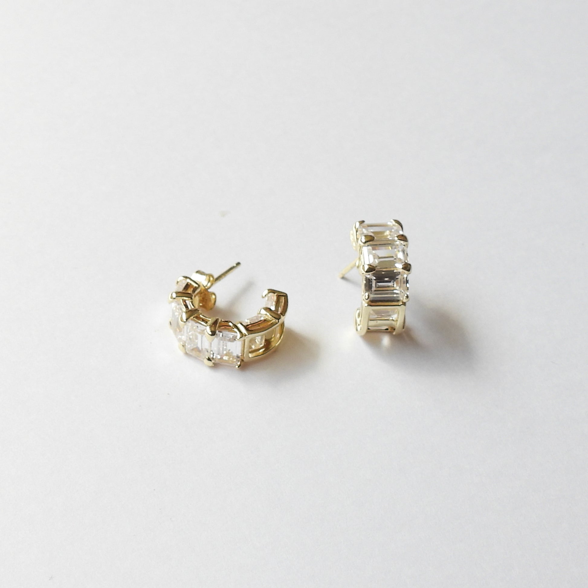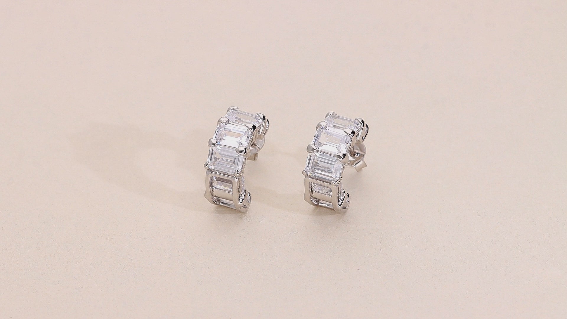 These miniature baguette hoops feature easy and secure butterfly clasps in the back, making them comfortable for all-day wear. The timeless combination of shiny sterling silver plus baguette cut cubic zirconia sparkle elevates any casual or formal outfit.