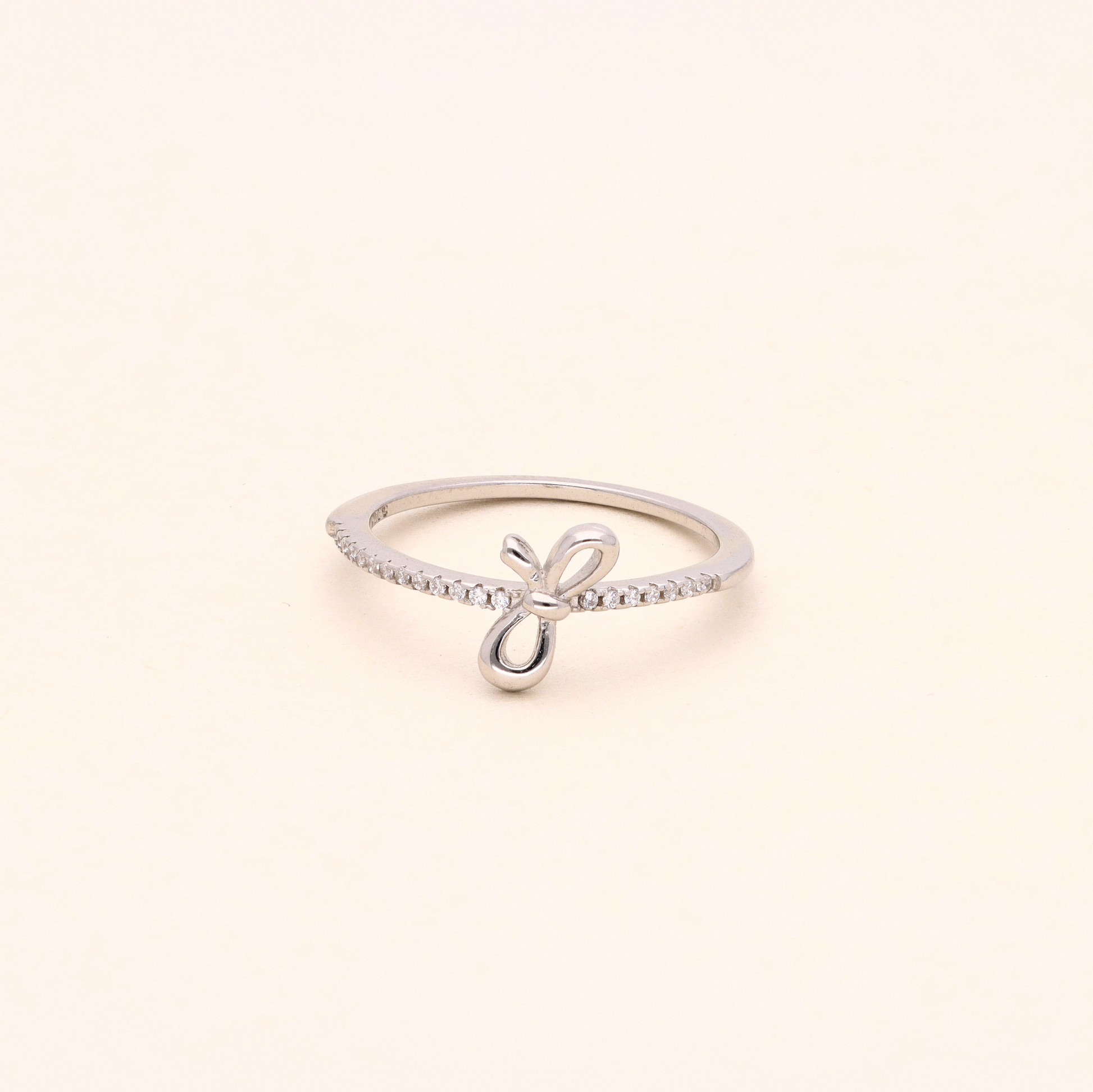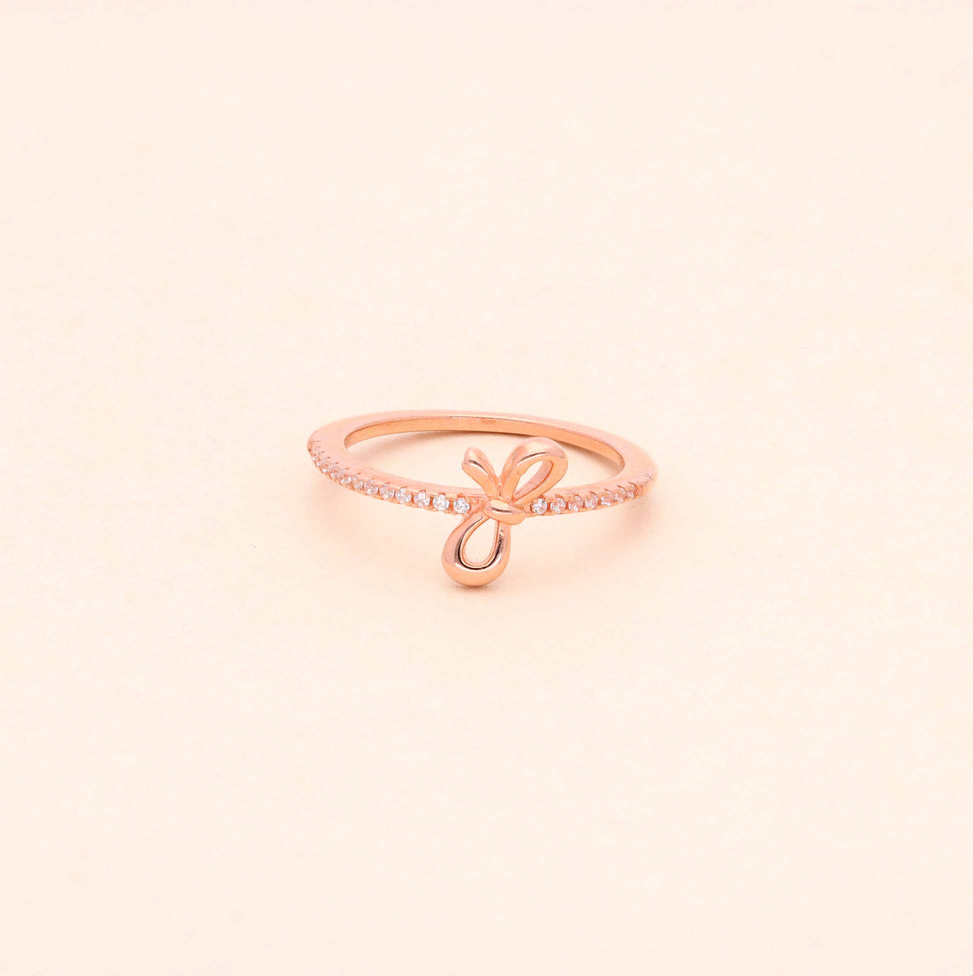 Introducing our charming Bow Ring, crafted from 925 sterling silver and available in both Silver and Rose gold finishes. This delicate ring features a beautifully curved, solid bow at the front, complemented by tiny cubic zirconia gems adorning the front half of the band. Simple yet elegant, this cute piece adds a subtle touch of sparkle to any outfit, making it a perfect choice for everyday wear.