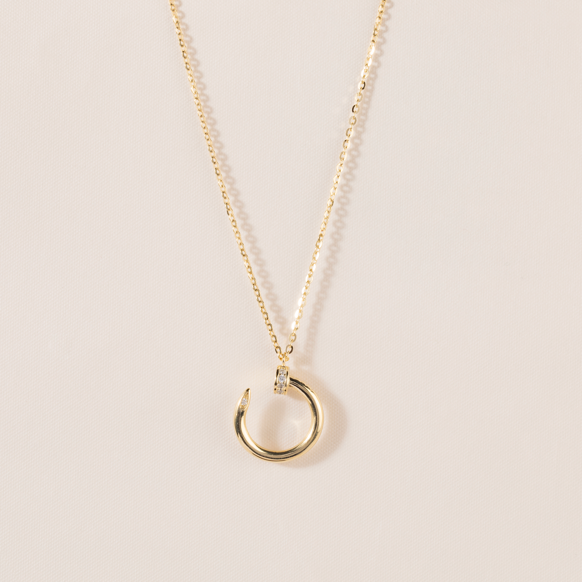This necklace showcases a sleek, open hoop pendant adorned with a shimmering cubic zirconia accent. The delicate chain complements the minimalist design, making it a versatile choice for both casual ensembles and elegant occasions. Available in a radiant gold finish, this piece exudes effortless charm and modern sophistication.