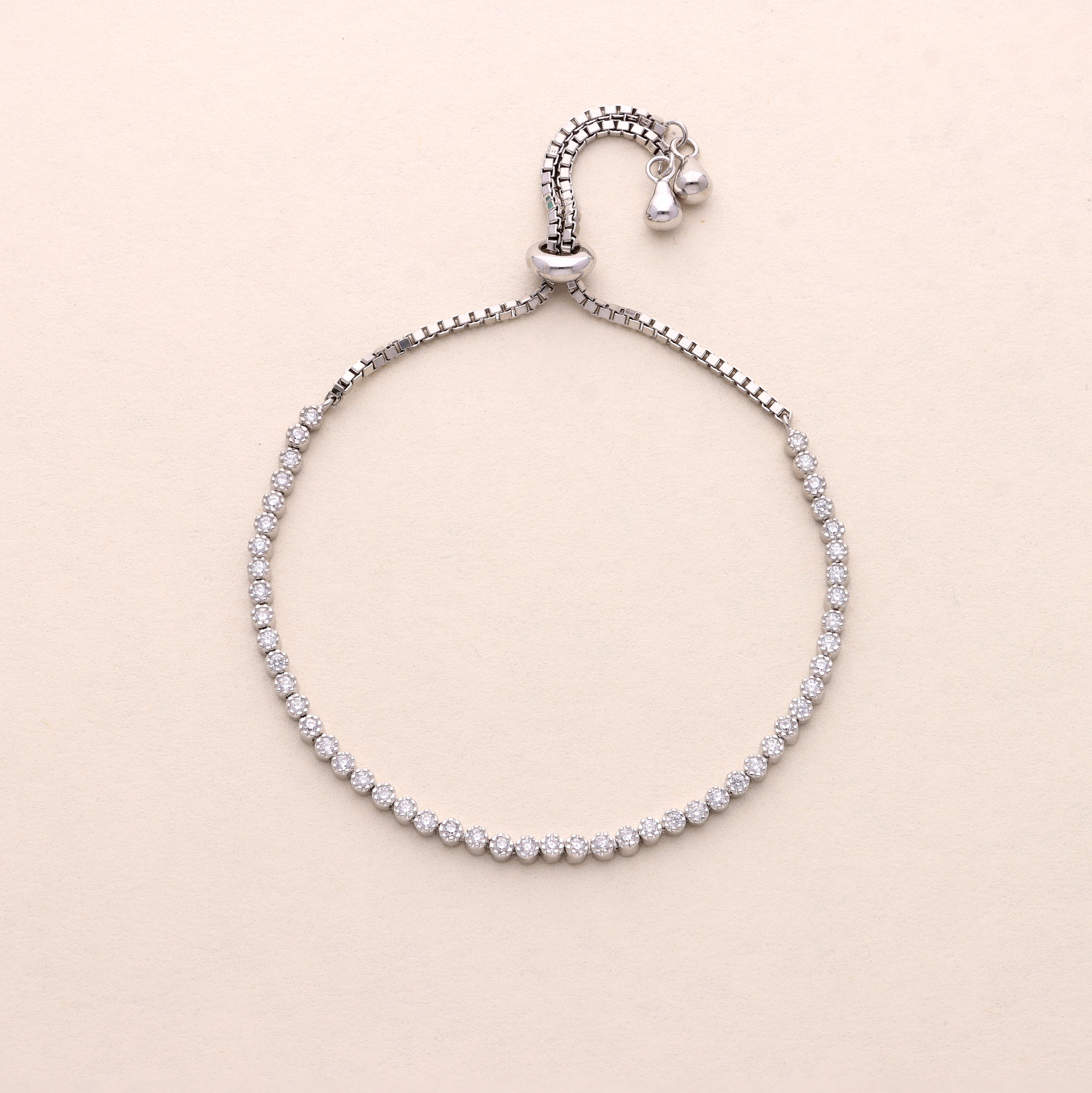 You need to add this fully adjustable tennis bracelet to your bracelet stack! Featuring a row of sparkling, circular cubic zirconia gemstones and available in both silver and rose gold finishes, this timeless piece offers the perfect balance of sophistication and versatility.