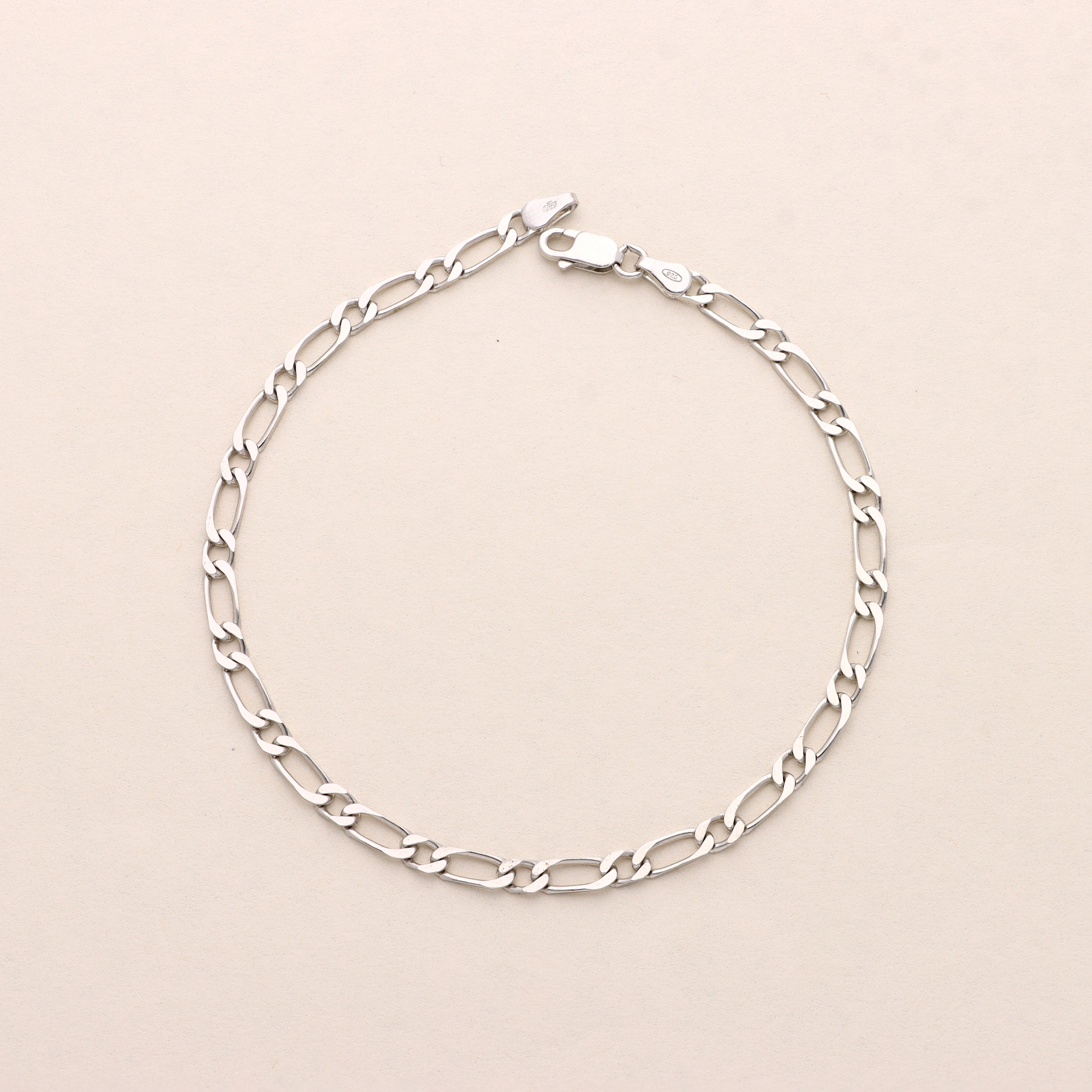 The Figaro Chain Bracelet is a classic statement piece with a bold yet refined design. Made from 925 sterling silver, it features the signature pattern of alternating link sizes for a sleek, timeless look. Durable and versatile, it’s perfect for everyday wear.