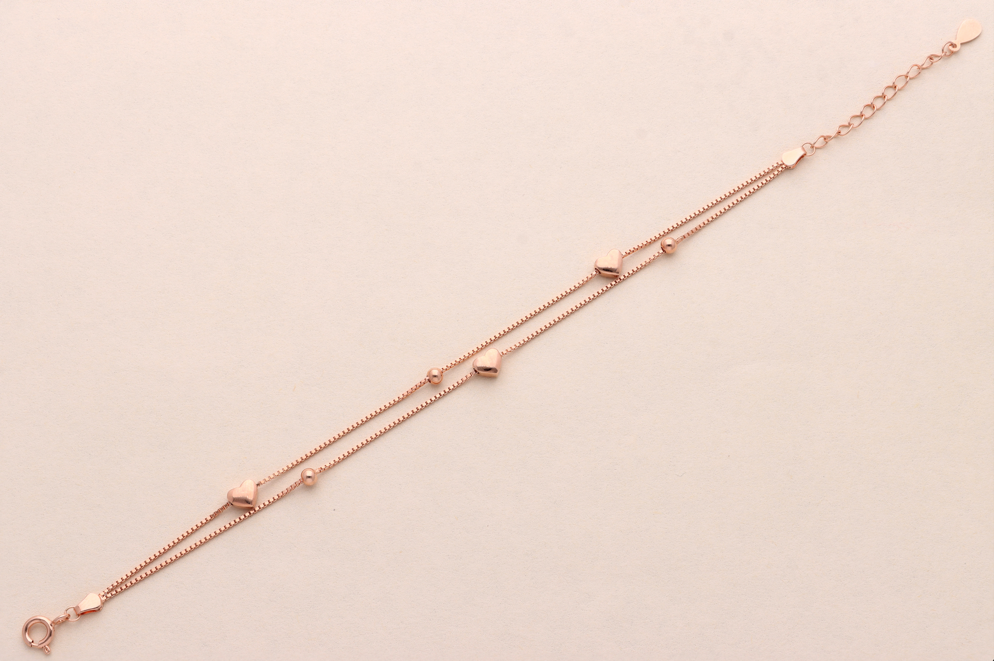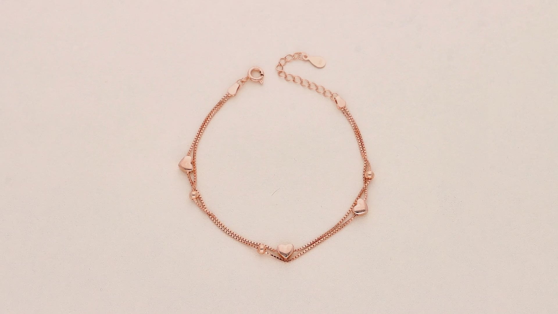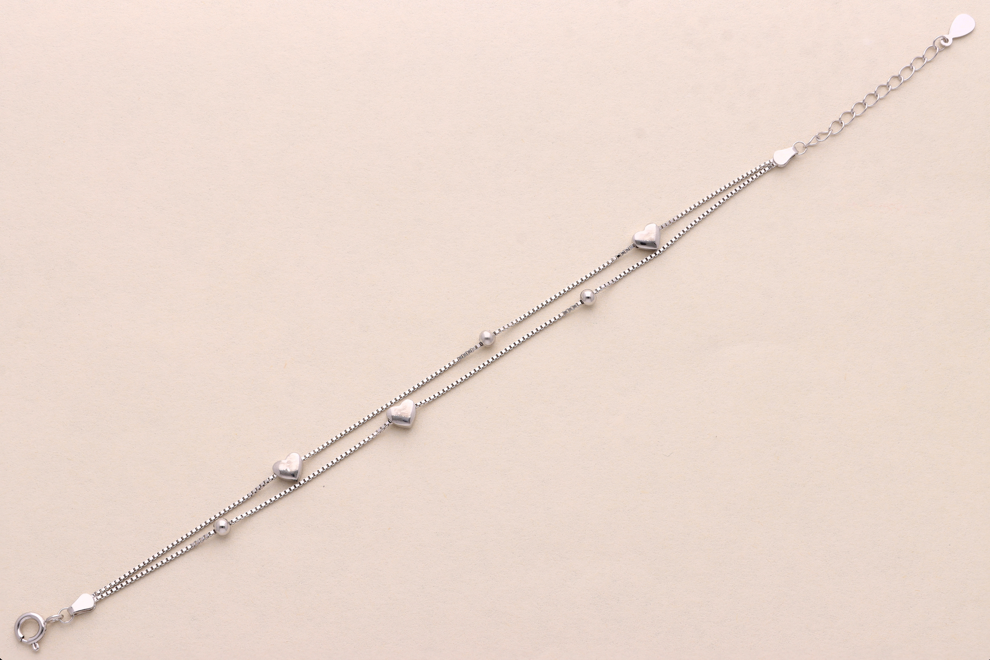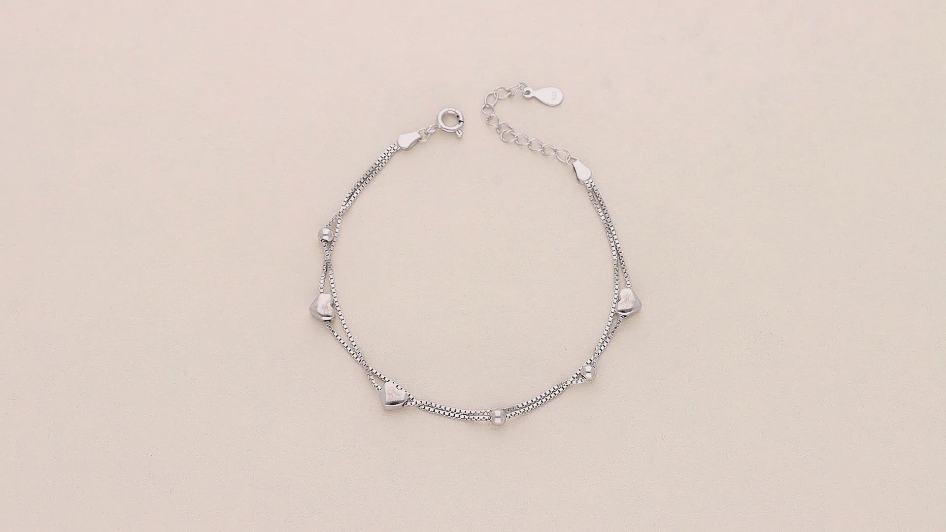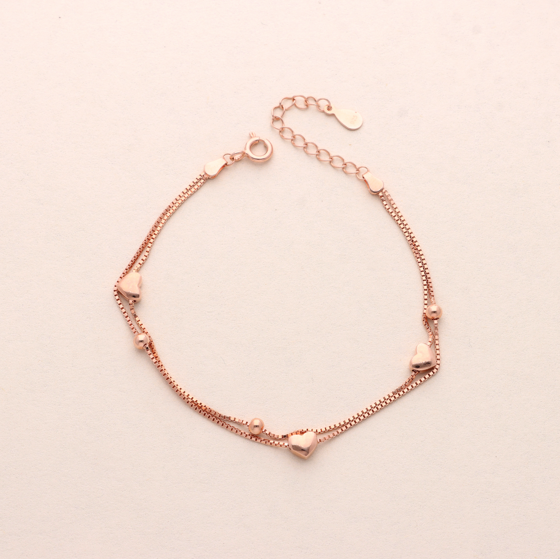 The Lana Heart Bracelet is the perfect puffy piece to elevate your jewellery collection. Crafted from 925 sterling silver, this chic bracelet features two polished box chains. One chain is adorned with three heart-shaped pendants, while the other is accented with three delicate beads. Available and Silver and Rose Gold finishes for a luxurious touch, this versatile bracelet can be worn alone or added to your favourite stack for a stylish layered look.