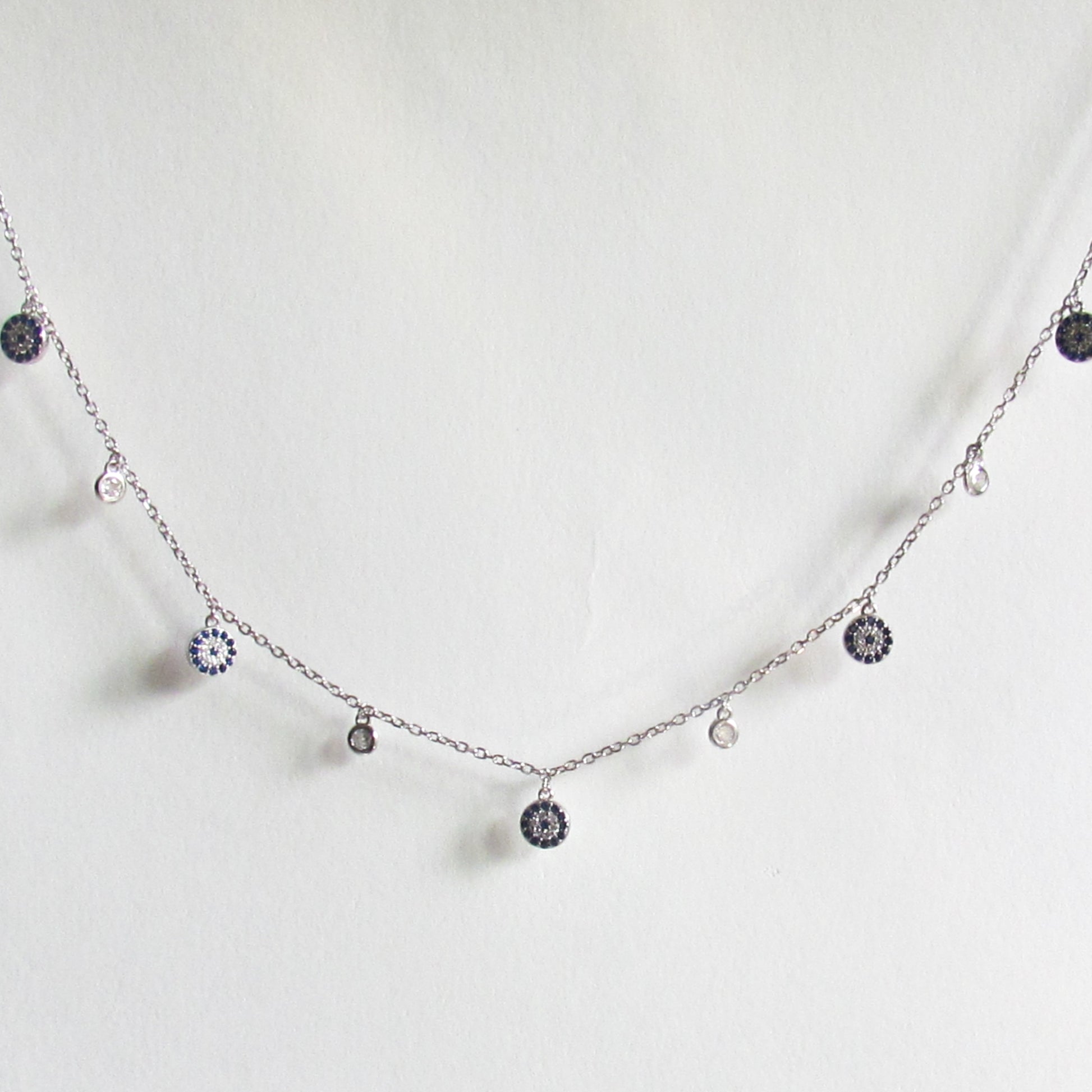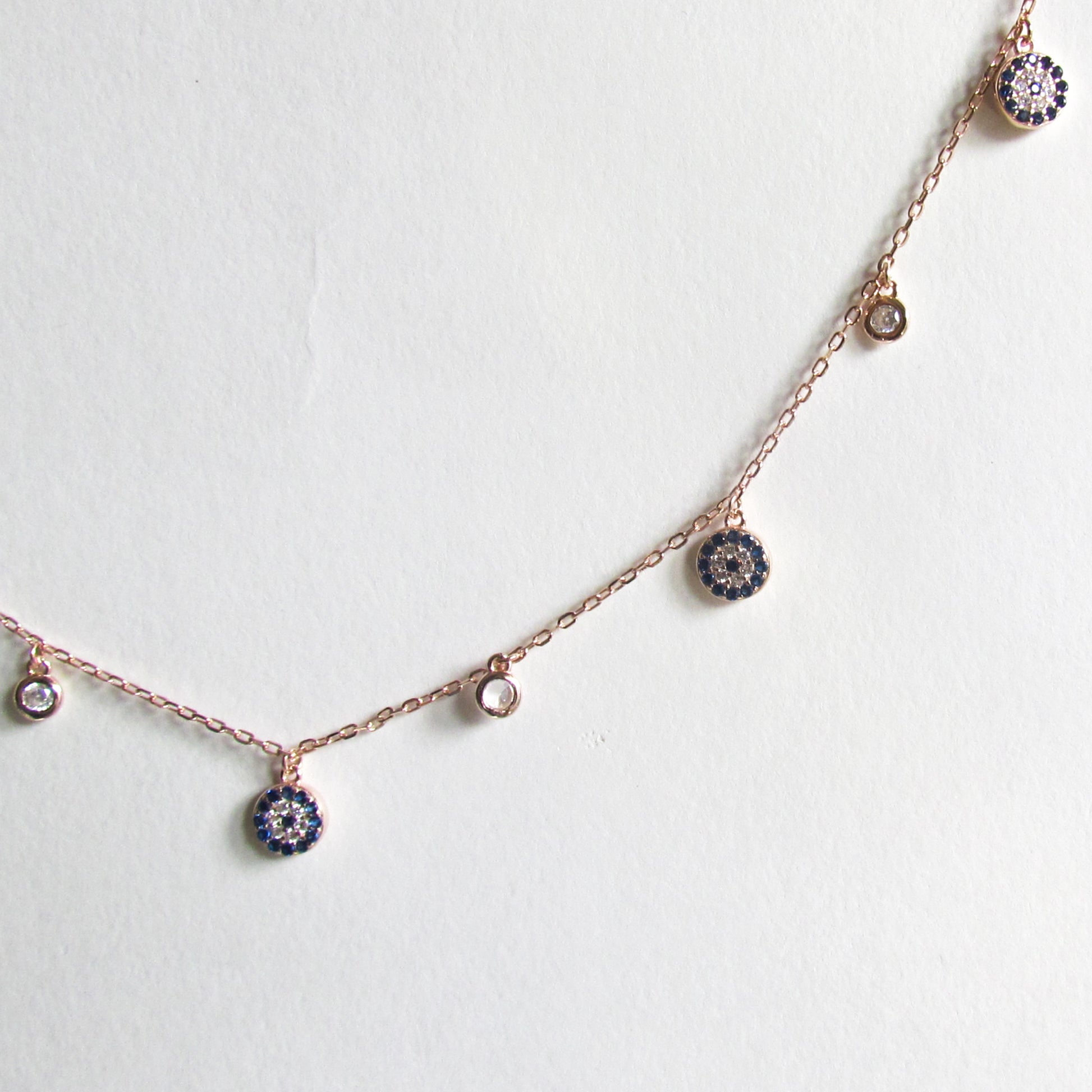 Buying single pendant evil eye necklaces is getting a bit old, try opting for this Marie Evil Eye Necklace instead. Dainty, elegant, and littered with tiny cubic zirconia gems and evil eyes made with colourful  cubic zirconia gems—what more could we ask for with this Marie Evil Eye Necklace? Style our Marie Evil Eye Necklace with other evil eye jewellery for a thoughtfully prepared look!