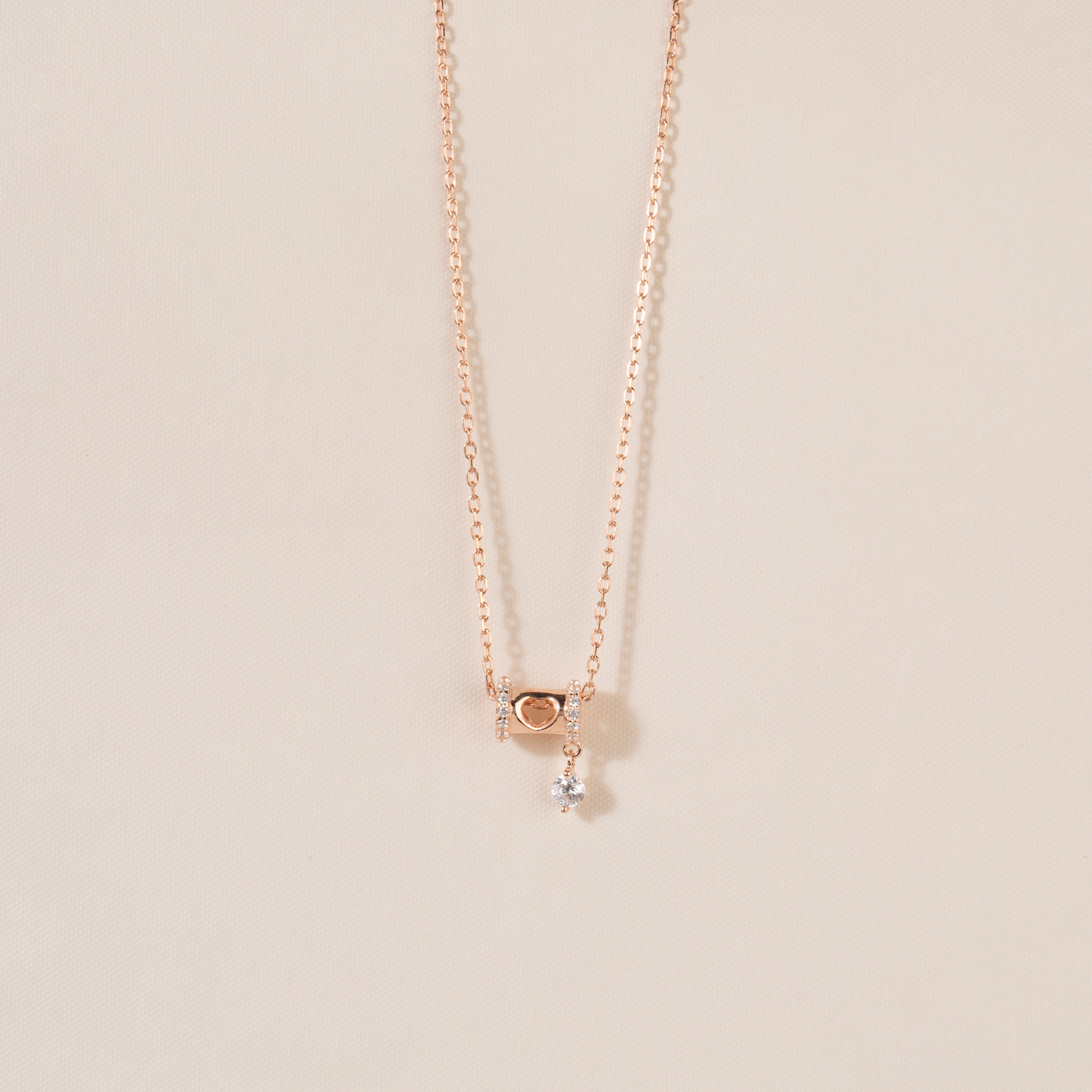 Dainty but impactful, this Quinn Heart Necklace will pair perfectly with other chains in your collection or by stand out by itself. The small cubic zirconia accented roller pendant suspends horizontally from the delicate link chain with a heart cut out and a small charm for extra cuteness.