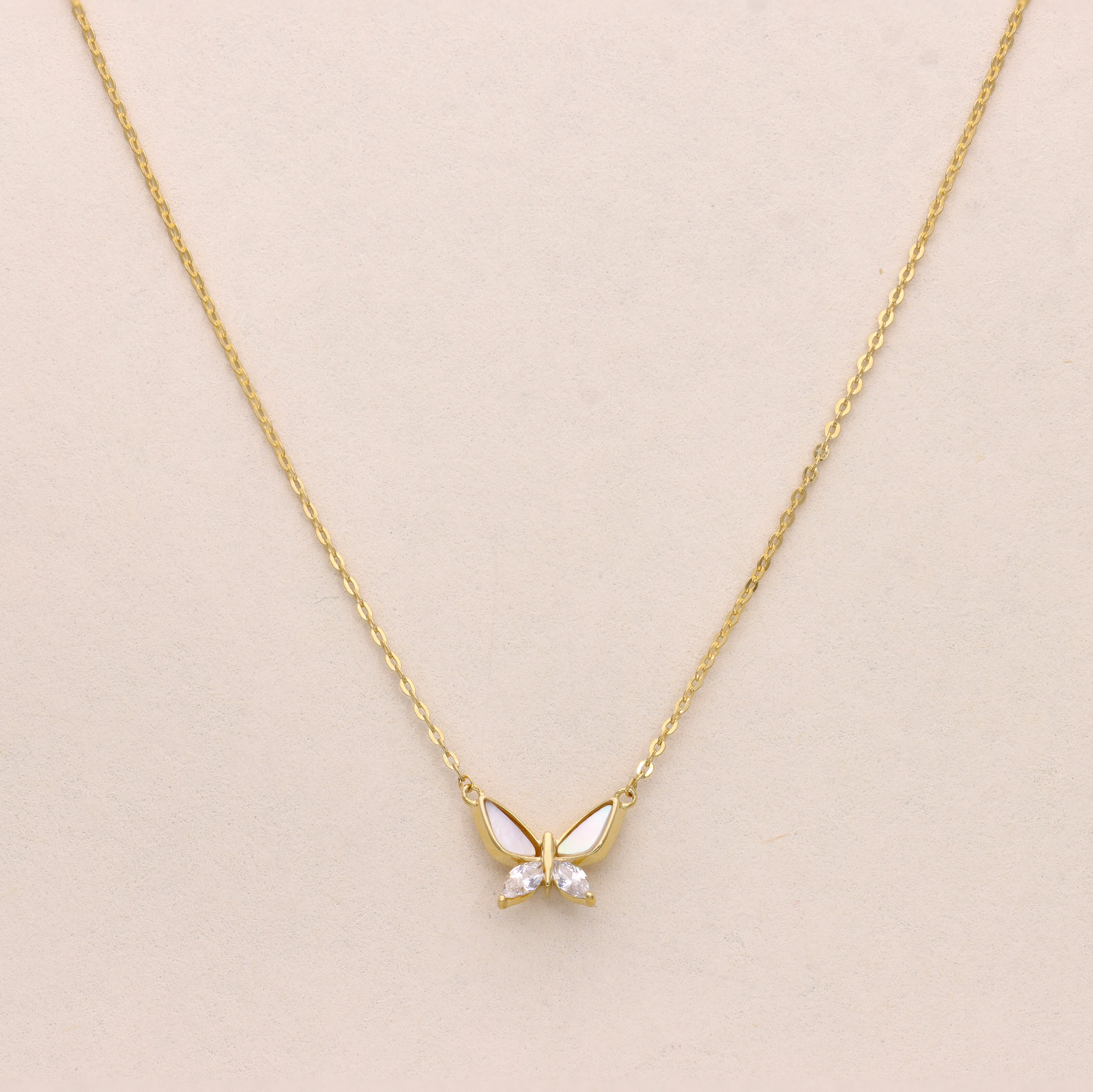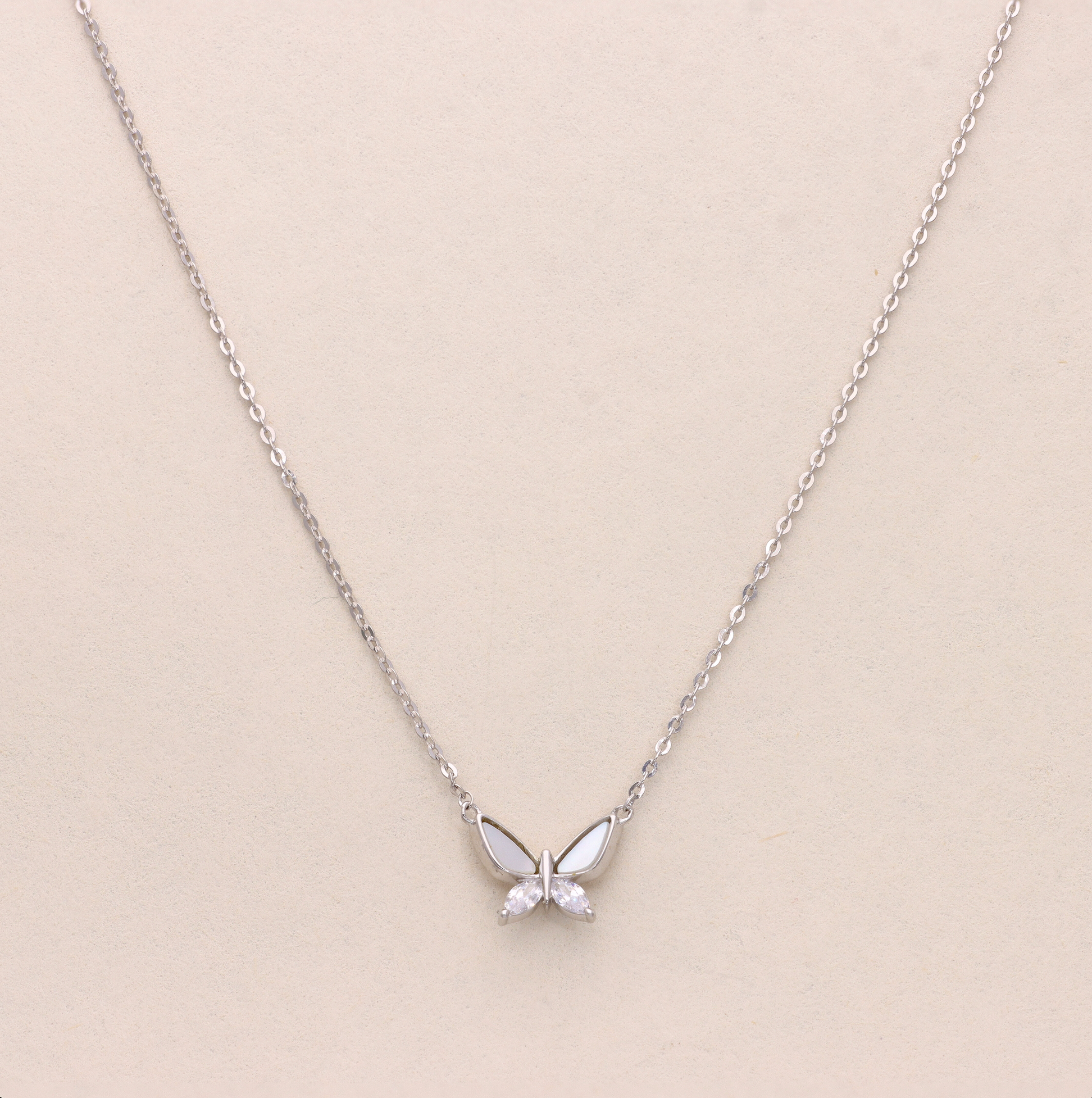 This charming butterfly necklace makes the perfect gift for yourself or someone special. Crafted from 925 Sterling Silver and subtly adorned with shimmering zircons, it exudes timeless beauty. Its minimalistic design and delicate chain make it ideal for daily wear, adding a touch of elegance to any outfit.